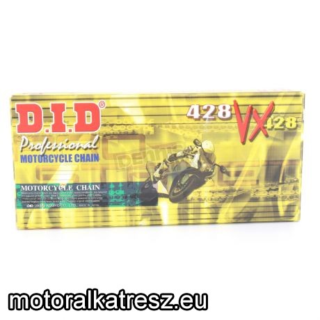 DID 428VX X gyűrűs extra tartós lánc kisebb köbcentis motorokhoz. Ez a lánc már ugyanannyit elfut, mint a nagyoké, sima 428 és erősített láncoknál akár tízszer többet, lévén már gyűrűt tartalmaz. A lánchoz nittelőszem jár. | Gyártó: | DID | Típus: | 428 | Hossz: | 148 | Ajánlott teljesítmény / ccm: | 50LE+ | Szín: | ezüst | Gyűrű típusa: | X gyűrűs | Felhasználási terület: | utcai | Megvásárolom: | | |