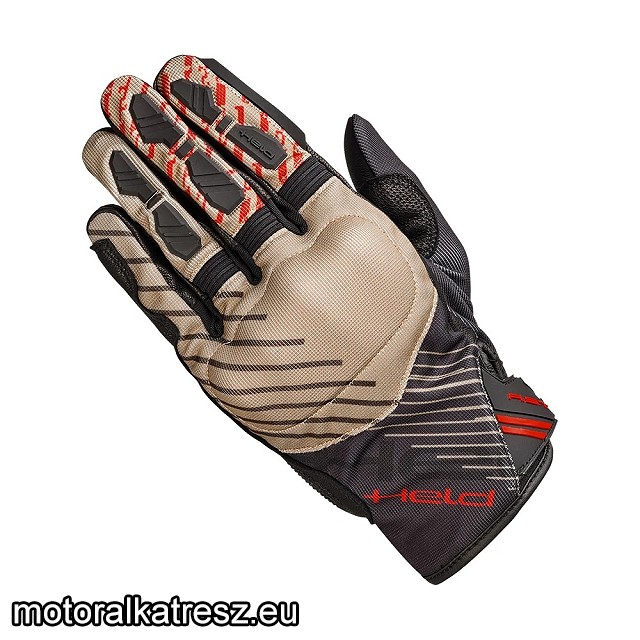 Termékjellemzők: | - Anyaga: Kecskebőr tenyér, felső része Nyspan és mikroszálas anyag, színtartó és izzadságálló - Bélés: Béleletlen alul, selyem bélés - Kézfejvédelem a kemény műanyag héjon keresztül, A kézvédelem protektora SuperFabric® márkájú anyagból, Armaprotec bevonattal - Tenyérerősítés - Szilikon nyomtatás a tenyéren - Plexitörlő a mutatóujján - Szellőztető betétek az ujjak között - Tépőzár a csuklón és a mandzsettán - EN 13594: "Védőkesztyű motorosoknak" szabvány szerint tanúsított ! - Veztési stílus: Adventure - Anyaga: bőr/textil keverék - Membrán:nincs - Szezon: Nyár - Vízálló:nem - Érintőképernyős működés: nem Gyártó: | Held | Használat: | Nyári | Anyag: | Bőr-textil | Hossz: | Közepes | Méret: |