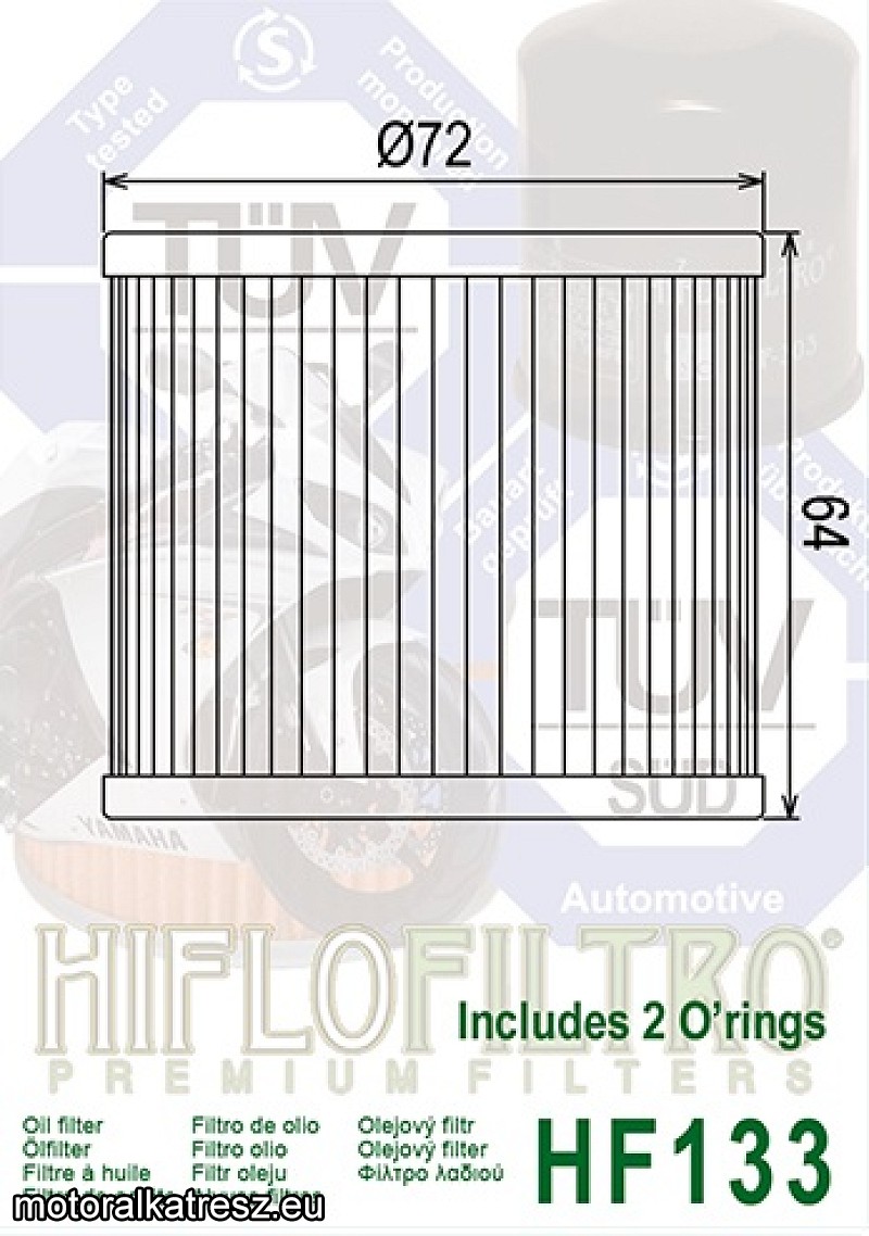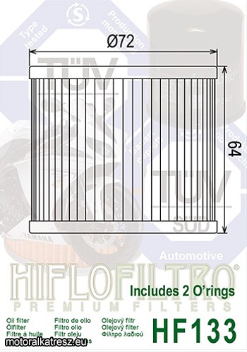 Gyárival megegyező minőségű olajszűrő a legelterjedtebb szűrőgyártótól. | A népszerű HifloFiltro olajszűrője motorkerékpárhoz. A gumitömítést is tartalmazza a kép szerint. Gyártó: | HifloFiltro | Megvásárolom: | | |