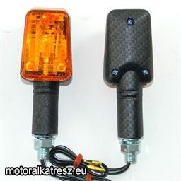 E jelzéses karbon/carbon szögletes hosszú szárú univerzális index pár. | Hagyományos izzó, az izzót az index tartalmazza! Teljes hossz: 117mm Csavar hossza: 20mm Gyártó: | MotoPRO | Megvásárolom: | | |