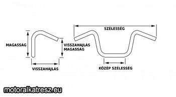 Harley-Davidson motorkerékpárokhoz. | Alkalmas: 82-24 FLH/T; 08-23(NU)FLHX Touring elektromos gázhoz is Kormánybefogó:25,4mm Magasság: 43,2cm Szélesség: 94cm Közép szélesség: 40cm Visszahajlás:21,6cm Gyártó: | OHC - alkatrészek Harley-Davidson motorokhoz (ex OHC-Shop)