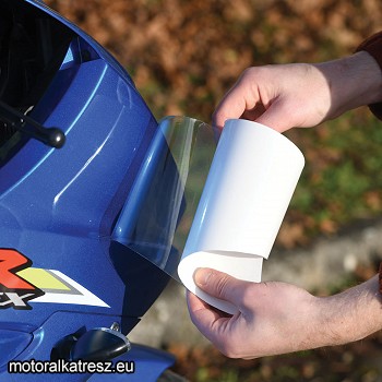 Felragasztható, vágható, fényezés védő fólia lap. | Az átlátszó, színtelen 425x665mm-es lap kivágási mintákkal kerül egy szettbe, mellyel könnyen kivágható belőle tankpad, oldalsó idomvédő, hátsó idomvédő, oldalsó tankvédő vagy akár fejidom védő. Véd a karcoktól, melyeket okozhat akár a ruházat, kosz, por vagy bármi egyéb külső behatás vagy szennyeződés. Gyártó: | Oxford | Megvásárolom: | | |