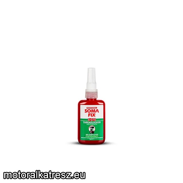Nagy erősségű, végleges menetrögzítő. Nem folyik meg a becsavarást megelőzően. Csak a | levegő hiányában szárad a szorosan összeillesztett fémrészek között. Megakadályozza a vibráció miatti kilazulást és a mentek közötti szivárgást. Véd a rozsdásodástól. Mindenféle csavar és anya rögzítésére alkalmas. Különösen alkalmas nagy menettávolságú csavarok rögzítésére, illetve ahol maximális kötési erősség szükséges. Használható motorblokkokon, futószalagokon, valamint gépek alkatrészeinek általános összeillesztésekor. Használati utasítás: Győződjön meg arról, hogy a felület tiszta, por, szennyeződés és zsírmentes. Az első és a harmadik menet közé kenje a menetrögzítőt. A kívül maradó felesleges anyag nem szárad meg, és könnyen letörölhető. Gyártó: | SomaFix | Megvásárolom: | | |