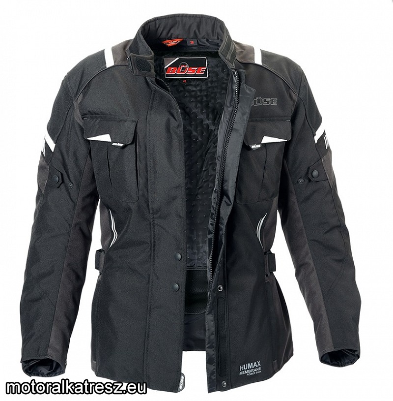 A Büse belépő szintű kabátja, a Breno megújult. Teljesen új design-t és szabást kapott, hogy még kellemesebb viselet legyen. | Termék leírása: - Humax vízálló, szélálló, lélegző membrán - YF ütésre keményedő váll- és könyökprotektor - Állítható könyökprotektor magasság - Előkészítés SAS-TEC gerincvédőre - Kivehető termobélés - Neoprénes gallér, tépőzárral állítható bőség - Ellenálló 450D Cordura szövet - Cipzáras szellőző a törzs kétoldalán - Állítható ujj-, felkar-, derék- és csípőbőség - Kényelmes, szellős hálós betét a ruhában - Összekötő cipzár - Ideális kombináció a Breno nadrággal - 4 külső zseb, ebből 2 vízálló - 1 belső zseb - Fényvisszaverő elemek több helyen - ISO 4916 biztonsági varrások NŐI méretezés! Mérettáblázat Méretmérés Gyártó: | Büse | Méret: |